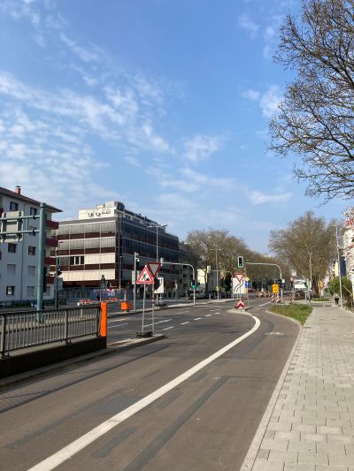 Der Umbau des Abschnitts westlich des Karoline‑Luise‑Tunnels ab der Ritterstraße bis zur Kreuzung Brauerstraße/Reinhold‑Frank‑Straße begann im April 2024 und wird voraussichtlich bis Juli 2026 dauern.[7] Statt bisher drei durchgehender Fahrstreifen sind künftig jeweils nur noch zwei Fahrspuren pro Richtung vorgesehen, ergänzt durch je einen Radfahrstreifen pro Seite. An der Ritterstraße wurde erstmals seit über 50 Jahren wieder eine ebenerdige Querungsmöglichkeit für Fußgänger und Radfahrer geschaffen. Dadurch ist die Kriegsstraße an dieser Stelle nun barrierefrei überquerbar und die Verbindung zwischen den angrenzenden Stadtteilen verbessert.